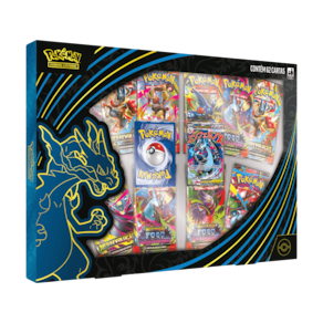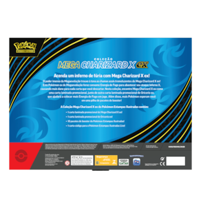 Acenda um inferno de fúria com Mega Charizard X ex! O poder imenso da Megaevolução trouxe à tona as chamas azuis tremeluzentes de Mega Charizard X ex! Este Pokémon ex de Megaevolução feroz consome Energia de Fogo para abastecer seu ataque Inferno X, causando mais dano para cada carta que você descartar. Nesta coleção, encontre Mega Charizard X ex como uma carta laminada promocional, junto de outra carta laminada promocional de Oricorio ex, que ajudará a colocar mais Energia de Fogo em jogo. Além disso, mais Pokémon esperam você.