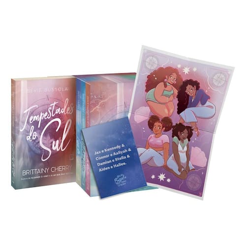 Brittainy Cherry prova que, seja qual for a direção que sua vida seguir, sempre haverá um grande amor esperando por você. Agora reunidos em um boxe exclusivo, os quatro livros da série Bússola são leituras indispensáveis para amantes de histórias românticas e de superação. Tempestades do Sul (336 páginas) Tudo o que Kennedy queria era fugir. Fugir de um casamento no qual não havia mais amor nem respeito e dos fantasmas que não paravam de atormentá-la. E a pequena Havenbarrow parecia o lugar perfeito para recomeçar sua vida. Ela só não contava que iria cair nos braços do bad boy da cidade logo de cara. E o pior: havia algo muito familiar naquele tal de Jax... Juntos, eles acabam descobrindo que são muito mais do que duas almas atormentadas em busca de redenção. Luzes do Leste (420 páginas) Nada melhor do que uma festa para curar um coração partido. Se for Halloween então, perfeito! Lá, Aaliyah pode ser apenas Chapeuzinho Vermelho, e não a estudante que sonha em ser uma grande jornalista. Só que, em vez do Caçador, ela é resgatada pelo Capitão América. Juntos, os dois têm uma noite mágica e, para não quebrar o encanto ao amanhecer, resolvem não relevar seus nomes. Até que, dois anos depois, ela tem a chance de ser promovida, mas, para isso, precisa conseguir uma entrevista exclusiva com o solteiro mais cobiçado de Nova York — Connor Roe. Para o mundo, ele é o empresário mais bem-sucedido do momento; para Aaliyah, ele é o super-herói que tocou seu coração. Ondas do Oeste (350 páginas) Depois de anos buscando pistas sobre suas origens, Damian Blackstone finalmente descobre que seu pai se chama Kevin Michaels. Ou melhor, se chamava, pois ele está morto. Kevin era dono de uma fortuna, que, de acordo com seu testamento, deve ser dividida entre Damian, seu filho biólogico, e Stella, sua filha de criação. Mas há uma condição para receberem a herança: os dois devem se casar e permanecer juntos por seis meses, senão tudo será dividido entre as três ex-esposas de seu pai, mulheres capazes de botar a madrasta má da Cinderela no chinelo. Estrelas do Norte (378 páginas) Hailee e Aiden cresceram juntos na pequena Leeks, e, desde que deixaram as implicâncias de lado, nunca mais se desgrudaram. Os dois sempre foram incentivadores um do outro acima de tudo, mas, quando o sentimento de amizade se torna uma paixão incontrolável, os dois têm de decidir o que é mais importante: a carreira artística de Aiden em ascensão ou viver o grande amor. Classificação indicativa: 18 anos.