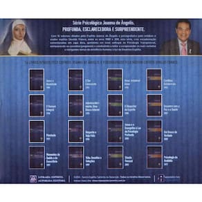 Com 16 volumes ditados pelo Espírito Joanna de Ângelis e psicografados pelo médium e orador espírita Divaldo Franco, entre os anos 1989 e 2011, esta série, com encadernação comemorativa em capa dura, apresenta um novo enfoque da Psicologia Transpessoal, enriquecendo os conceitos junguianos e conduzindo à compreensão acerca dos mais variados e intrigantes temas da existência humana à luz da doutrina espírita. 1. Jesus E Atualidade 2. Homem Integral (O) 3. Plenitude 4. Momentos De Saúde E De Consciência 5. Ser Consciente (O) 6. Autodescobrimento: Uma Busca Interior 7. Desperte E Seja Feliz 8. Vida Desafios E Soluções 9. Amor, Imbatível Amor 10. Despertar Do Espírito (O) 11. Jesus E O Evangelho À Luz Da Psicologia Profunda 12. Triunfo Pessoal 13. Conflitos Existenciais 14. Encontro Com A Paz E A Saúde 15. Em Busca Da Verdade 16. Psicologia Da Gratidão