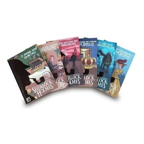 Nesse combo você encontrará 6 livros capa brochura da série sherlock holmes (um estudo em vermelho, um escândalo na boêmia e outras aventuras, o roubo da coroa de berilos e outras aventuras, o cão dos baskervilles, a liga dos cabeças vermelhas e outras aventuras e o signo dos quatro).