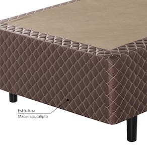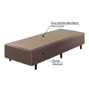Características - Marrom - Estrutura: Madeira reflorestada - Revestimento: Tecido matelassê - Pés de 15 cm cada na cor tabaco - Para colchão 88x188cm ( não incluso) - Entregue montado - Marca: Ecoflex