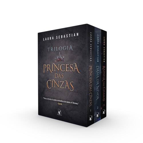 Este box contém os três volumes da trilogia Princesa das Cinzas, uma fantasia épica sobre um trono cruelmente roubado e uma garota que luta para recuperá-lo para seu povo. Uma heroína apaixonante destinada a ser rainha! “Para os fa~s de A Rainha V ermelha e de Game of Thrones.” – Bustle “Os fa~s das se´ries A Selec¸a~o e Jogos Vorazes va~o adorar a jornada da princesa Theodosia, com seus aliados inesperados e ousados planos de fuga.” – School Library Journal • Princesa das Cinzas: A jove m Theodosia tem seu destino alterado para sempre depois que seu país é invadido e sua mãe, a Rainha do Fogo, assassinada. Aos 6 anos, a princesa de Astrea perde tudo, inclusive o próprio nome, e passa a ser conhecida como Princesa das Cinzas. • Dama da Névoa: O kaiser subestimou Theo, considerando-a fraca e indefesa. Ele não percebeu que uma mente arguta é a arma mais mortal. Agora, Theo não usa mais uma coroa de cinzas. Ela recuperou o título que lhe pertencia, mas, para recuperar o trono, el a precisa de um exército. • Rainha das Chamas: Nesta emocionante conclusão da trilogia, Theo precisa abraçar seu novo poder como Rainha das Chamas se quiser derrotar Cress, a mulher a quem um dia chamou de irmã do coração.