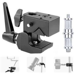 Monte uma Câmeras, Monitores, Iluminadores Leds ou outro Acessório Fotográfico em um sistema de haste com esta Braçadeira Super Clamp M01 Garra Multifuncional com Pino para Estúdio Fotográfico. Projetado para se adaptar a qualquer haste de 10 a 55mm de diâmetro ou a uma superfície plana de até 50mm de espessura, em superfícies planas use cunha de borracha removível para apertar com mais segurança; e possui capacidade de até 10kg de carga máxima.Soquete Hexagonal de EncaixeO Soquete Hexagonal de encaixe é compatível com pinos sextavados e pinos de encaixe, proporcionando uma conexão segura e sem torção para acessórios. Conecte a ponta hexagonal do pino de 5/8 na Braçadeira Super Clamp enquanto pressiona a trava de mola de liberação rápida para montagem conveniente e estável. O parafuso 5/8 é ideal para Painéis Iluminadores LED, Ring Light, Microfones, Flash de Estúdio, entre outros acessórios com o 5/8.Adaptador Pino de EspigãoEsta Braçadeira para Barra acompanha um Adaptador Pino de Espigão reversível que possui rosca de 1/4-20 em uma extremidade e um parafuso de 3/8-16 na outra extremidade, para que possa acomodar uma variedade de acessórios. Rosca de 1/4-20 e M5Para maior conveniência e versatilidade, o Super Clamp Multifuncional é equipado com roscas fêmeas de 1/4-20 e M5 para fixação de acessórios adicionais, como um Braço Magico ou um Adaptador de Cabeça, ou qualquer outro acessório que deseje usar.Cunha para Superfícies PlanasA cunha plana incluída fornece ao grampo uma superfície plana correspondente para fixação em portas, tampos de mesa ou prateleiras.Principais Características: Construção em alumínio, leve e resistente Entrada com Rosca de 1/4-20 e várias roscas M5 Pino de Espigão reversível com parafusos de 1/4-20 e 3/8-16 em cada extremidade Almofadas de borracha dentro da braçadeira prendem-na à haste e protegem seu equipamento Permite a montagem estável de câmeras, luzes, monitores e outros acessórios de até 10kg Adapta-se a qualquer haste de 10 a 55mm de diâmetro ou a uma superfície plana de até 50mm de espessura. Marca: Não Informado Ean: 0847628538870