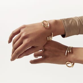Bracelete banhado a ouro, aberto na parte da frente, com zircônias brancas. O bracelete é um acessório antigo e até os dias atuais ele permanece com muita força e cheio de estilo. De diferentes tamanhos, o bracelete é uma peça perfeita para se ter, pois combina com diferentes looks e proporciona um visual moderno e elegante.