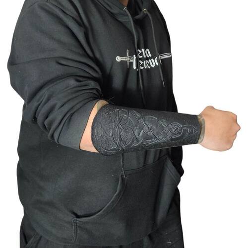 Bracelete Couro Dragão Entalhado Estilo Viking Cosplay Preto Bracelete de Couro Entalhado com Dragão Estilo Viking Medieval Este bracelete é uma peça artesanal feita em couro , com entalhe em alto-relevo de um dragão em estilo nórdico, ideal para composições medievais, vikings, LARP, cosplay ou figurinos temáticos. Os detalhes impressionam pela textura e acabamento, combinando resistência com um visual marcante. Dimensões: Comprimento total: 23 cm Circunferência para antebraço: 22 cm Circunferência para punho: 15 cm Material: Couro de alta resistência Ilhós metálicos para regulagem e fixação com tiras Embalagem de Envio Comprimento: 26 cm Largura: 22 cm Altura: 5 cm Peso aproximado: 320 g Uso e Cuidados com o Produto: Recomenda-se evitar exposição prolongada ao sol e contato com água para manter a integridade do couro. Para limpeza, utilize pano seco ou levemente umedecido e, para conservar o brilho e a durabilidade, aplique produtos específicos para couro periodicamente. Marca: Não Informado Ean: 601891522062