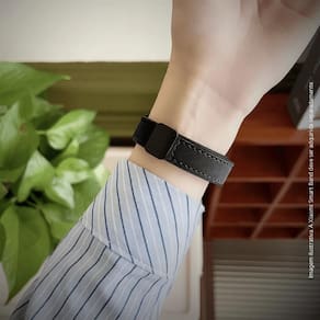 Sistema de fecho magnético integrado que proporciona ajuste rápido, firme e personalizado ao pulso, garantindo praticidade na colocação e remoção.