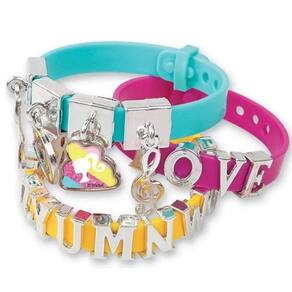 Com 4 pulseiras coloridas, pingentes temáticos e letras brilhantes, você pode montar combinações únicas que refletem sua criatividade e amor pelo universo Barbie.