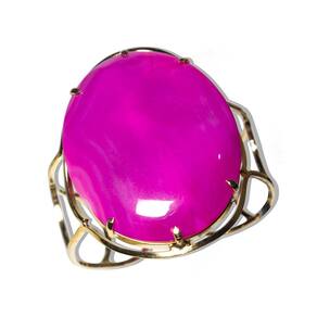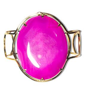 Nome da Pedra: Ágata RosaCor da Pedra: Rosa (foto ilustrativa – tonalidades podem variar)Lapidação: Cabochão Gigante (manual)Claridade: OpacaDimensões da Pedra: Aproximadamente 50 x 35 mm (com pequena variação para mais ou menos)Montagem: Bracelete fixo com ajuste, dourado reforçadoPeso Total da Joia: Cerca de 100 quilates (variação possível)Origem da Pedra: Garimpos do BrasilMontagem e Lapidação: Feitas por artesãos da Cristaisdecurvelo