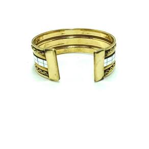 BRACELETE DE METAL DOURADO COM DETELHES DE APLICAÇÃO DE METAL PRATEADO OPACA