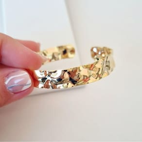 Bracelete Feminino fino Regulado Martelado banhado Ouro 18k