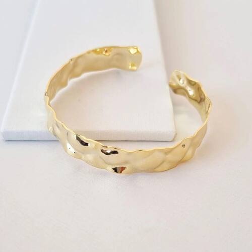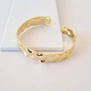 Descrição: Bracelete Feminino fino Regulado Martelado banhado Ouro 18k