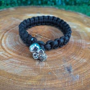 Pulseira ParacordPulseira de Sobrevivência e ideal Para quem gosta de camping, caminhadas, montanhismo. Seu Cabo Paracord de 3,8 M suporta ate 550 libras, caveira como fecho para dar mais estlo.Caracteristicas:Fecho de metal na forma de caveira Cabo Paracord 3,8 M suporta até 550 libras, resistência do cabo chega a 250KgDimensões:Pulseira: 27 cmPeso : 30gAcompanha:1 Bracelete Paracord