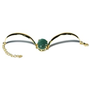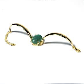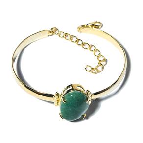 Bracelete Quartzo Verde Pedra Natural Mini Cabochão Dourado