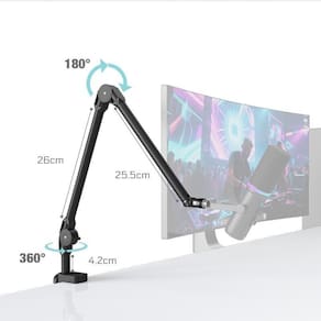 Braço articulado para microfone alumínio para podcast estúdio c1 Corpo: alumínio Compatibilidade: microfones padrão Uso: estúdio e podcast Largura máxima: 30 cm Altura máxima: 90 cm Braço articulado em alumínio para microfone - ajustável para podcast, estúdio e lives O braço articulado em alumínio para microfone oferece mobilidade, estabilidade e um visual para qualquer estação de gravação. Ideal para podcasts, estúdios, home studios, lives, streaming e locução, ele permite posicionar o microfone com precisão, mantendo a mesa organizada e livre. A construção em alumínio garante resistência e leveza, enquanto a rotação de 360 proporciona total liberdade de ajuste. A garra tipo c economiza espaço e fixa com segurança em mesas e superfícies com borda. Compatível com microfones populares como sm7b, mv7, at2020, bm800 e modelos que utilizam roscas 3/8 ou 5/8. Principais benefícios: Estrutura em alumínio leve e resistente Ajustes suaves e rotação de 360 Ocupa pouco espaço na mesa Ideal para setups de podcast, estúdio e streaming Compatível com microfones profissionais Instalação rápida e firme através da garra ajustável Especificações técnicas: Comprimento do braço superior: 25,5 cm Comprimento do braço inferior: 26 cm Abertura da garra tipo c: 1-55 mm Capacidade de carga: 1,5 kg Rosca: 3/8 com adaptador 5/8 Material: alumínio Cor: preto Marca: aj som acessórios musicais Indicado para: Podcasts e videocasts Estúdios e home studios Lives e transmissões Gravações, dublagem e locução Criadores de conteúdo, gamers e streamers Conteúdo da embalagem: 1 braço articulado em alumínio 1 garra tipo c para fixação 1 adaptador de rosca 5/8 Observação: Não acompanha microfone, shock mount ou pop filter. Marca: Não Informado Ean: 7908403314676