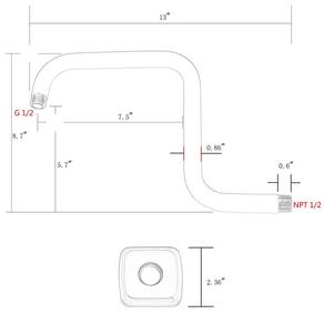 TRUSTMI Braço de chuveiro de aço inoxidável de 33 cm de altura, montado na parede Material: aço inoxidável Comprimento: 33 cm Cor: Cromado Conector: 1/2" NPT para parede, IPS de 1/2" para cabeça de chuveiro A embalagem inclui: 1 x braço de chuveiro 1 x flange - Estrutura de aço inoxidável sólido, 33 cm de comprimento para você desfrutar de chuveiro de chuva, compatível com ducha quadrada ou redonda de 20 cm, 25,4 cm, 30,5 cm (não serve para chuveiros quadrados de 30 cm sem junta esférica giratória ou maiores) - Acabamento cromado polido, ilumina o braço do chuveiro, resiste a arranhões e corrosão - Padrão dos EUA 1/2" NPT cônico para parede, rosca reta IPS de 1,27 cm para cabeça de chuveiro - 15 mm de diâmetro interno e 22 mm de diâmetro externo, resistência suficiente para o seu chuveiro grande, altura total de 20,8 cm com chuveiro de 12,7 cm levantada - Flange com borracha para proteger o braço do chuveiro de arranhões. Design em forma de S para melhorar sua capacidade de carga e elevar sua cabeça de chuveiro. Fácil instalação, sem ferramentas.