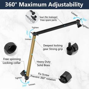 Extensor de cabeça de chuveiro de latão soild de 40,64 cm, altura ajustável estendida com conexão universal G1/2 para chuva e chuveiro portátil - Escolha a altura do chuveiro: a extensão do braço do chuveiro de 40,6 cm pode diminuir a altura do chuveiro portátil para alcançar facilmente crianças, idosos e desativar na cadeira de chuveiro, e uma distância estendida da parede para impedir que o cotovelo bata no suporte ou na parede - Latão maciço: Feito de latão resistente com juntas giratórias duráveis que não racham. DICA: Teste a carga máxima de 4,5 kg, considerando o peso da água deixada no chuveiro, recomendamos que você não use mais de 1,6 kg de chuveiro - Porca giratória livre com 2 parafusos de fixação: O colar de travamento giratório permite que você instale o extensor do braço do chuveiro na posição perfeita. 2 parafusos fixados facilmente na porca giratória, o que impede que o braço de extensão tenha rotação de 360 - Conexão universal G1/2: Esta extensão de braço de chuveiro atende ao chuveiro de chuva padrão dos EUA e cabeça de chuveiro portátil. É hora de se livrar da má experiência de banho, atualize seu sistema de chuveiro - Projeto DIY fácil e kit de correção de vazamento: não há necessidade de assistência de encanador ou faz-tudo. Basta instalar em alguns minutos. Pacote com kit de correção de vazamento. Se ocorrer vazamento, você pode facilmente corrigir o vazamento imediatamente com instruções simples e vídeo