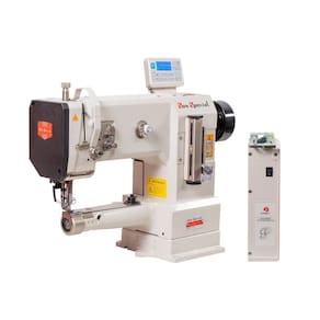 Braço cilíndrico, Uma agulha, Lançadeira grande, Transporte triplo por agulha, dentes e calcador, Costura com linhas 90 a 100, Lâmpada LED, Motor eletrônico com CPU embaixo da mesa e painel digital.Funções