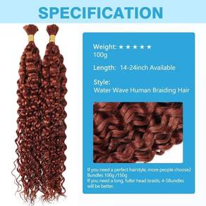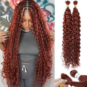 Human Braiding Hair Deep Water Wave Bulk 100 g 20 polegadas encaracolado para extensões de tranças boho, sem trama, 2 tranças por pacote, úmida e ondulada, cor gengibre escuro, cor 350