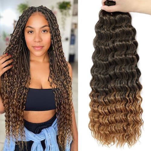 - Fácil de usar: nosso cabelo trançado de ondas profundas é incrivelmente fácil de usar. Apenas com uma agulha de crochê, você pode facilmente criar uma variedade de penteados para se adequar a qualquer ocasião, do casual ao glamouroso. Como tranças boho box, tranças de caixa de deusa, tranças de caixa sem nós, deusa locs e outros estilos de cabelo cacheado de crochê.
