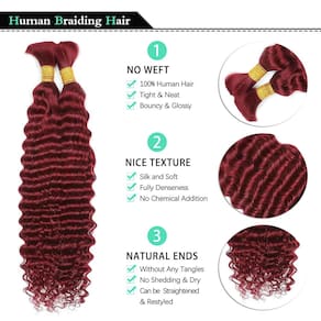 Cabelo humano trançado 2 feixes/pacote 100 g Borgonha 99J cabelo humano encaracolado ondulado profundo para trançar sem trama 10A cabelo humano virgem brasileiro trançado para extensões boho tranças - ?Cabelo humano trançado para tranças Boho Dica?Um pacote não é suficiente para criar um penteado, mais pessoas optam por pedir 100 g mais 100 g para poder fazer um penteado mais perfeito - Comprimento e cor do cabelo humano trançado: cabelo humano ondulado profundo para trançar com uma ampla variedade de cores (#1B/#2/#4/#27/#30/#350/#4-27/#99J/#613), comprimentos (40.6-71.1 cm) disponíveis, você pode escolher a combinação perfeita para suas preferências e alcançar o visual desejado - ?Material de cabelo humano trançado? Usamos 100% cabelo humano virgem brasileiro 10A não processado, a textura do cabelo humano boho tranças é incrivelmente macia, suave e fácil de manusear, parecendo muito com cabelo natural - ?Cabelo boho para trançar mais amplamente utilizado? O cabelo encaracolado humano trançado oferece grande versatilidade, não apenas adequado para tranças boêmias, tranças sem nó, tranças boho e tranças de caixa, mas também permite um estilo fácil para diferentes visuais modernos - ?Cabelo humano a granel para trançar longa duração?Devido à sua composição de cabelo real de alta qualidade, o cabelo humano trançado molhado e ondulado é excepcionalmente durável, mantendo seu apelo estético por longos períodos. Isso garante que você possa usar esses penteados com confiança