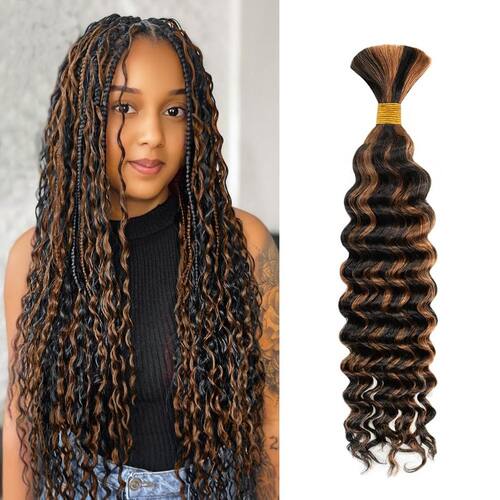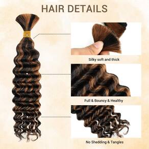 - ?6-8 Balayage cabelo humano ondulado profundo preto a marrom cabeça inteira?O cabelo humano encaracolado para tranças boho está disponível em feixes de cabelo humano de 35 a 56 cm, molhado e ondulado de 35 a 40 cm, 1 pacote é de 40 g, 45 a 50 cm, 1 pacote é de 50 g, 56 cm 1 O pacote é 60 g. O cabelo humano para trançar mulheres negras tem comprimento e peso reais, qualidade garantida. Se você gosta de cabelo humano de cabeça inteira para tranças boho de 35,5 cm, recomendamos que você compre de 6 a 8 mechas de cabelo humano trançado de ondas profundas para tranças boho sem nós.