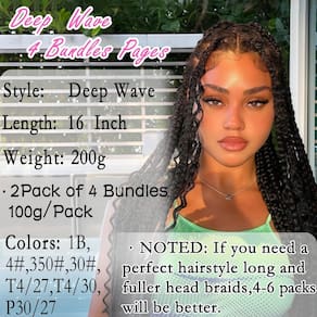 Somos uma fábrica que se concentra em produtos de cabelo trançado humano e massa sintética de ondas profundas. Este produto é feito de cabelo trançado humano para tranças boho, mistura cabelo boho sintético para tranças, forneceremos cabelos boho premium. Selecionamos fibras sintéticas de alta qualidade, controlamos rigorosamente cada etapa do processamento, trazemos cabelos trançados humanos boho de boa qualidade e encaracolados para suas mãos e trazemos uma experiência feliz a cada cliente. Este cabelo encaracolado trançado é feito de fibra sintética de alta temperatura, fofo e elástico, a textura é semelhante ao cabelo humano trançado boho. De aparência natural e supermacio como cabelo humano para trançar, o design exclusivo de cabelo trançado ondulado está na moda, deixando você mais bonita e charmosa. O cabelo humano encaracolado Boho para trança é um dos penteados mais populares para mulheres negras, pois criará um look encantador para você. O cabelo trançado humano molhado e ondulado é muito macio, liso e natural, será a trança boho mais bonita que você já viu, o cabelo é fácil de separar, economiza tempo ao trançar e não é fácil de emaranhar ao usar. Cabelos humanos em massa de ondas profundas para trança excederão suas expectativas. Este cabelo humano a granel para trança é adequado para muitas ocasiões. Como evitar o emaranhamento do cabelo: 1, retire suavemente o cabelo trançado molhado e ondulado. 2, borrife um pouco de água ou condicionador no cabelo ondulado, mantendo o cabelo úmido para evitar emaranhados de forma eficaz. 3, Divida o cabelo humano encaracolado boêmio suavemente e lentamente, não divida muitas vezes, isso causará emaranhamento 4. Tente usar as mãos para trançar o penteado como quiser. - Qualidade premium: nosso cabelo boho para trança é feito de fibra sintética de alta qualidade, misture um pouco de cabelo trançado humano para melhorar a sensação de toque. Macio, liso, elástico, sem emaranhados, que é durável para garantir que você aproveite o lindo cabelo encaracolado e trançado. Estilo múltiplo: você pode criar muitos estilos exclusivos com nossas tranças boho. Tranças boêmias, tranças boho sem nós, tranças boho e tranças de deusa, etc. Trançar o cabelo para tranças boho é adequado para muitas ocasiões, como encontros, viagens, festas, festivais. Pacote com maior capacidade: cabelos em forma de onda profunda para tranças vêm com 4 pacotes por pacote. O cabelo trançado úmido e ondulado custa 110 g por pacote. Normalmente, 2 a 3 feixes são utilizados para modelar a cabeça. 4 peças ajudarão você a modelar penteados trançados saltitantes, mais cheios e charmosos. - Fácil de trançar: este cabelo humano encaracolado para tranças boho pode ser facilmente trançado em seu cabelo, sem emaranhados e sem queda. Dura vários meses após ser trançado, o cabelo boho microtrançado não agride a pele, não machuca o couro cabeludo e é fácil de manter. Mais ocasiões: esse cabelo volumoso para trançar traz lindos estilos de cabelo para você, adequados para uso diário, encontros, férias, festas e festivais. Qualquer dúvida sobre cabelo trançado boho, não hesite em contactar-nos, será resolvida dentro de 12 horas