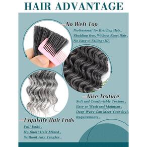 - Material: Cabelo ondulado profundo para trançar O cabelo é feito com cabelo sintético de alta qualidade, próximo ao cabelo humano, aparência natural, toque macio, durável e resistente, a textura é a mesma do cabelo humano.