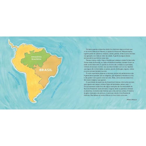 O terceiro volume da coleção Brasileirinhos é dedicado exclusivamente aos animais que habitam a maior floresta tropical do planeta Terra: a Amazônia. A Floresta Amazônica é a maior floresta tropical em extensão do mundo, e guarda entre suas árvores a maior reserva de biodiversidade do planeta. São incontáveis plantas, insetos e animais que vivem e mantêm viva a nossa grande floresta. Os parceiros de longa data, Lalau e Laurabeatriz, transformam em poemas e ilustrações alguns animais que habitam a Amazônia e são importantíssimos para a fauna brasileira. Do cachorro-do-mato-vinagre ao besouro-hércules, essa seleção vai divertir e conscientizar os pequenos leitores sobre os tesouros vivos do Brasil. Com apresentação de Milton Hatoum. Este livro é indicado para crianças a partir de 4 anos.