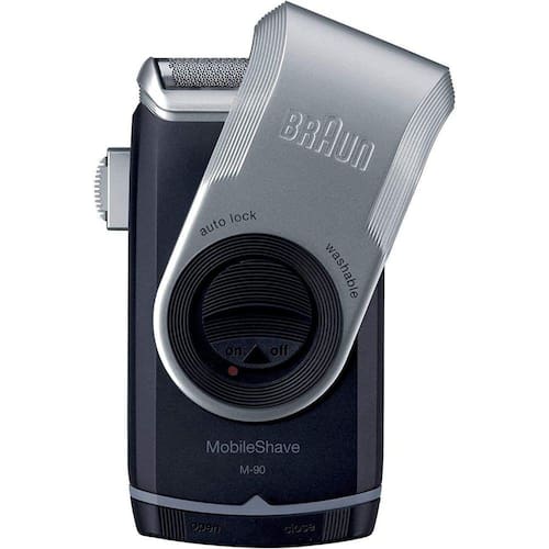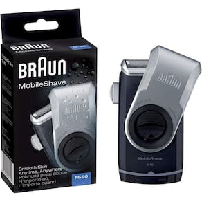 Braun M-90 é um barbeador elétrico alimentado por bateria equipado com uma lâmina de rede multipadrão que proporciona um barbear ainda mais profundo.