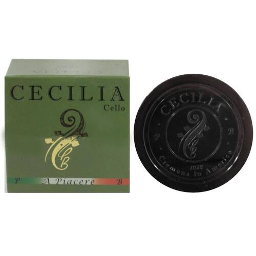 O breu Cecilia A Piacere se caracteriza por sua cor escura esverdeada e resina macia. A resina natural de colofórnia proporciona projeção máxima, trazendo um timbre brilhante, som limpo, claro e forte. É um breu que possui aderência poderosa, ideal para músicos profissionais.