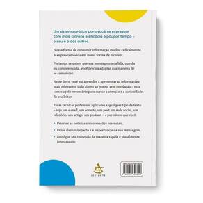 Escrever menos. Dizer mais. Ser ouvido. Um sistema prático para você se expressar com mais clareza e eficácia e poupar tempo – o seu e o dos outros. Nossa forma de consumir informação mudou radicalmente. Mas pouco mudou na nossa forma de escrever. Portanto, se quiser que sua mensagem seja lida, ouvida ou compreendida, você precisa adaptar sua maneira de se comunicar. Neste livro, você vai aprender a apresentar as informações mais relevantes indo direto ao ponto, sem enrolação – mas com o apelo necessário para captar a atenção e a curiosidade de seu leitor. Essas técnicas podem ser aplicadas a qualquer tipo de texto – seja um e-mail, um convite, um post na internet, um relatório, um artigo, um podcast – e permitem que você: • Priorize as notícias e informações essenciais. • Deixe claro o impacto e a importância da sua mensagem. • Divulgue seu conteúdo de maneira rápida e visualmente interessante.
