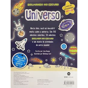 Atenção futuros astronautas de todo lugar! Neste livro, você vai descobrir muito sobre o universo. São 150 adesivos coloridos, 30 adesivos BRILHAM NO ESCURO e um monte de atividades de outro mundo!