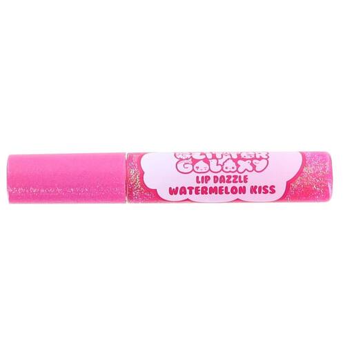 O Glitter Galaxy é um lugar mágico além do arco-íris, onde Dollop e seus amigos compartilham aventuras incríveis. Viaje para Nitzee, o Narwhal, que mora com Nozzle e Naida no Mar de Sugar Plum. Explore com Meemee, o unicórnio, e sua amiga Moomoo. Eles comem grama Gum Drop e moram no belo campo próximo à Candy Cane Forest. Faça novos amigos onde quer que você vá com o Glitter Galaxy Lip Dazzle!