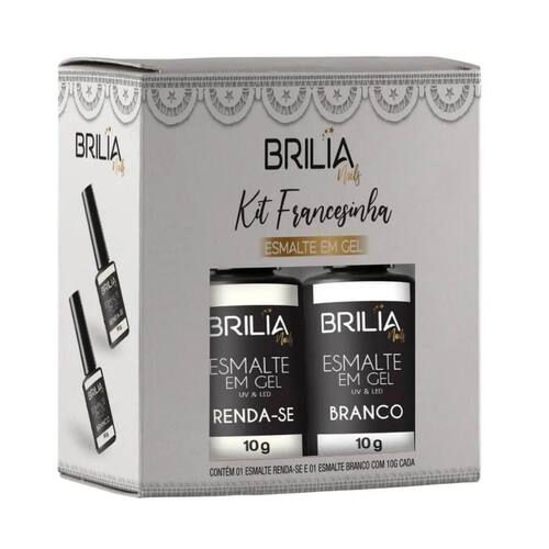 Brilia nail esmalte em gel kit francesinha Sobre o produto Kit francesinha em gel brilia nails, renda-se + branco 10g cada A brilia nails está sempre inovando e trazendo o melhor para a mesa de vocês maravilhosas nail designers. O esmalte gel renda-se além de ser uma mega novidade na marca é um esmalte de excelente cobertura, pigmentação uniforme, não amarela, não lasca, não perde o brilho e de facílima aplicação, pois não escorre. A renda traz a naturalidade e deixa cada detalhe mais visível e impactante. Modo de usar: - faça a higienização das mãos com prep e prepare as unhas com a lixa buffer ou lixa 240/240; - em seguida aplique o desidratador; deixe secar naturalmente sem cabine ; - aplique o primer adesivador; secar naturalmente sem cabine; - em seguida aplique uma camada de base, seque na cabine led/uv por 30 seg; - aplique uma camada do esmalte em gel renda-se , segue na cabine led/uv por 30 seg, - aplique uma segunda camada do esmalte se necessário e seque na cabine led/uv por mais 30 seg; - faça a ponta da sua francesinha como desejar. - aplique o top coat para finalizar e seque na cabine led/uv por 60 seg. Cabine indicada para secagem, no mínimo de 48w. Não encostar qualquer um dos passos na pele nem cutículas para maior durabilidade e acabamento perfeito. Imagem ilustrativa, a cor do produto pode ter mínimas alterações devido à condições de luz do seu aparelho.