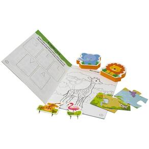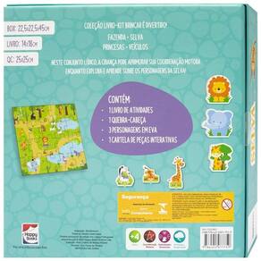 Neste conjunto Lúdico, a criança pode aprimorar sua coordenação motora enquanto explora e aprende sobre os personagens da selva Esse box contém um 1 livro de atividades, 1 quebra-cabeça, personagens em EVA e cartela de peças interativas.