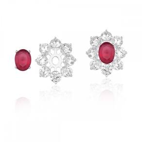 Brinco Feminino 2 em 1 Banhado a Ródio Flor em Zircônia Marsala e Branca, Cravejada com Zircônia cor Marsala e borda cravejada com Zircônias Brancas, Arrase