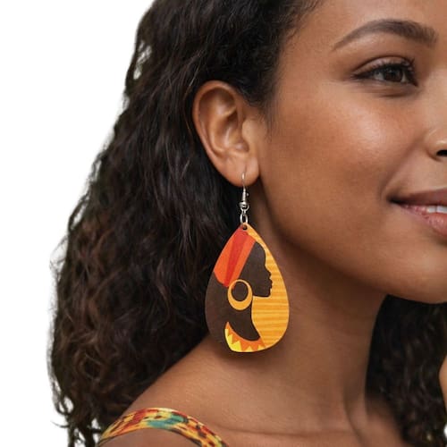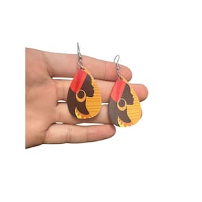 Brinco Afro Madeira Estampa Étnica Gota Colorido é um acessório cheio de identidade e estilo, perfeito para quem ama peças com personalidade. Com formato de gota e estampa inspirada na cultura afro, traz um visual moderno e autêntico. Leve e confortável, é ideal para o dia a dia, eventos culturais, looks casuais ou produções criativas. Um brinco que valoriza a beleza, a expressão e o estilo único de quem usa.