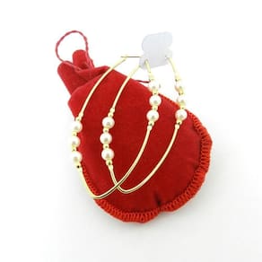 Brinco Argola 35X65Mm Perola 5Mm Folheado Ouro Br502