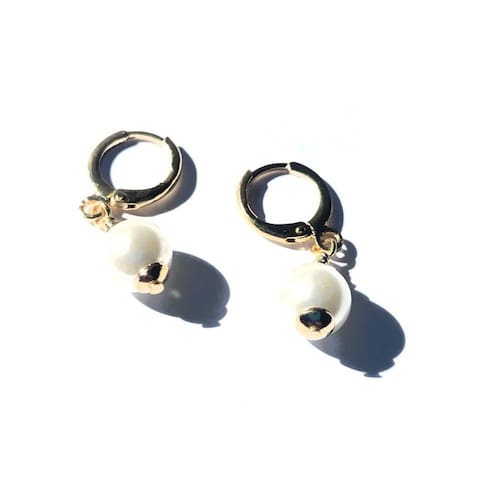 01 Par de Brincos Folheados a Ouro Argola Click com Pérola.