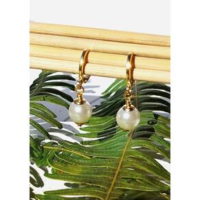 Brinco Argola Click com Perola Dourado Semijoia Lizzy Fatin