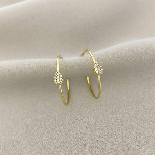 Brinco Argola com detalhe Gota com Zircônia Banhado a Ouro