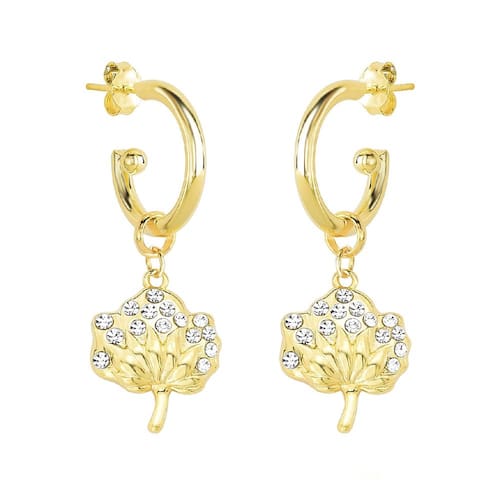 Nossa brinco é composto pela flor de algodão repleta de cristais, com Revestimento em Ouro, acompanhado de argola 1,7cm com tarraxa.