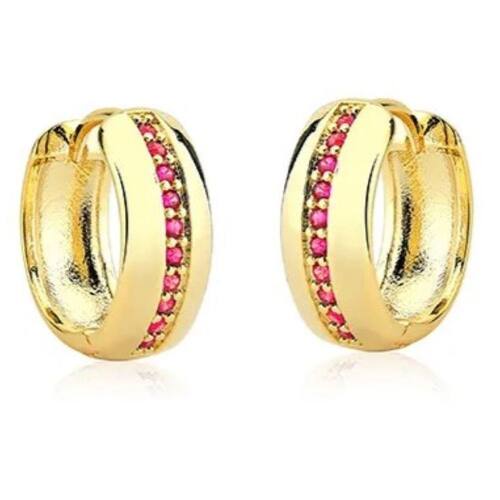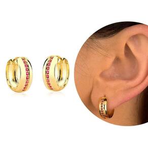 Brinco argola com micrô zircônias rosa semijoia lizzy fatin