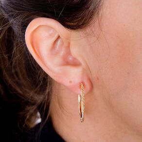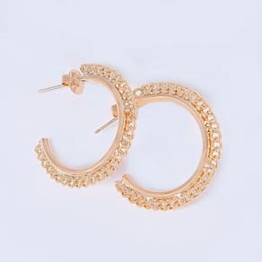 Um par de brincos argola média, banhada a ouro, todo trabalhado é luxuoso que te deixa em destaque em qualquer situação.