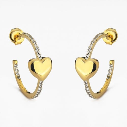 Acompanha o produto: - 01 Brinco Folheado Ouro 18K Argola Média Cravejada com detalhe em Coração Garantia: - Contra defeito de fabricação