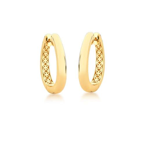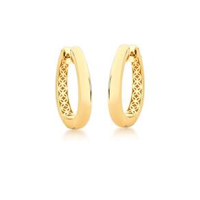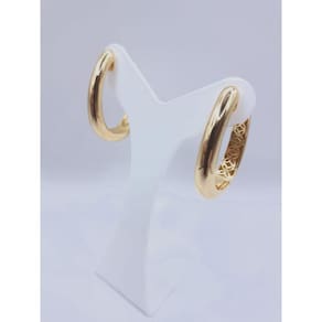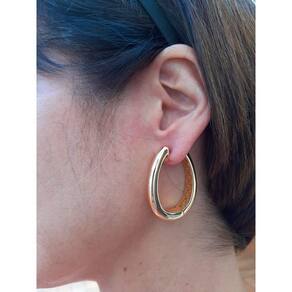 Argola oval lisa em formato de flores vazadas na parte interna banhada a ouro.