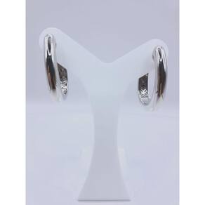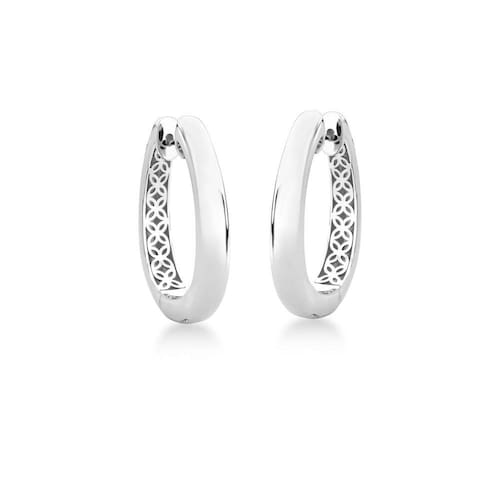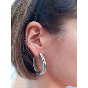 Argola oval lisa em formato de flores vazadas na parte interna banhada a ródio.