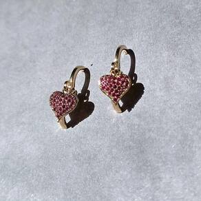 01 Par de Brincos Folheados a Ouro Argola Click com Pingente Coração com Zircônias.