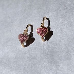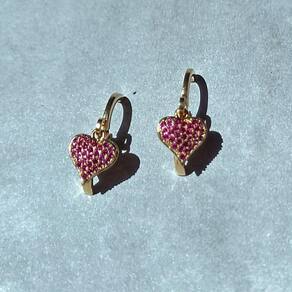 01 Par de Brincos Folheados a Ouro Argola Click com Pingente Coração com Zircônias.