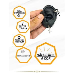 Brinco argola prata masculino feminino pressão corrente cruz trabalhada cartilagem aço inox Brinco argola prata masculino feminino pressão corrente cruz trabalhada cartilagem aço inox Brinco argola pressão modelo com corrente é uma ótima opção para presentear um amigo ou namorado. Brinco em aço inox a prova d'agúa, não descasca e não enferruja, podendo usar diariamente. Acompanha 1 unidade brinco argola pressão - não precisa de furo para usar. ========================================================= Fotos reais do produto na galeria Modelo a prova d'água, podendo usar em piscinas e praias, não descasca, não escurece, não perde a cor Detalhes técnicos: Marca: visujóias Modelo: brinco pressão corrente A prova d'agúa Sim Comprimento corrente clip pressão: 6 centimetros Incluso: 1 unidade Material: aço inoxidável. Código do produto sku : 3488 : 6 meses. Todas as peças possuem tratamento antialérgico. =============================================================================== Marca: Não Informado